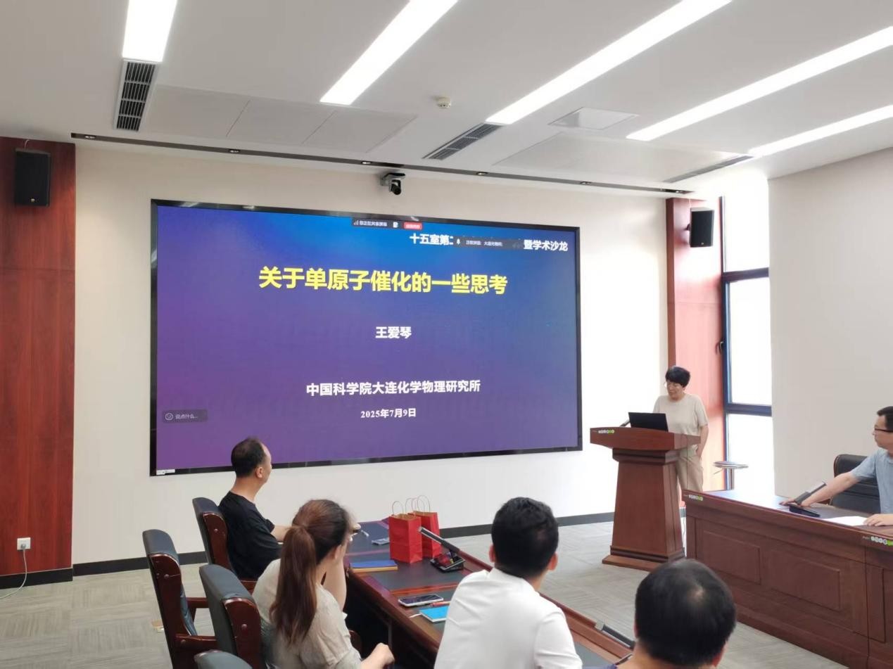 活动以“单原子催化之我见”学术沙龙拉开序幕。王爱琴研究员作题为《关于单原子催化的一些思考》的专题报告,系统梳理了单原子催化的核心概念、发展脉络与表征技术,并分享团队近年来的创新成果。报告深入探讨了该领域未来发展方向,引发与会人员热烈讨论,为科研人员提供了宝贵的学术交流机会。